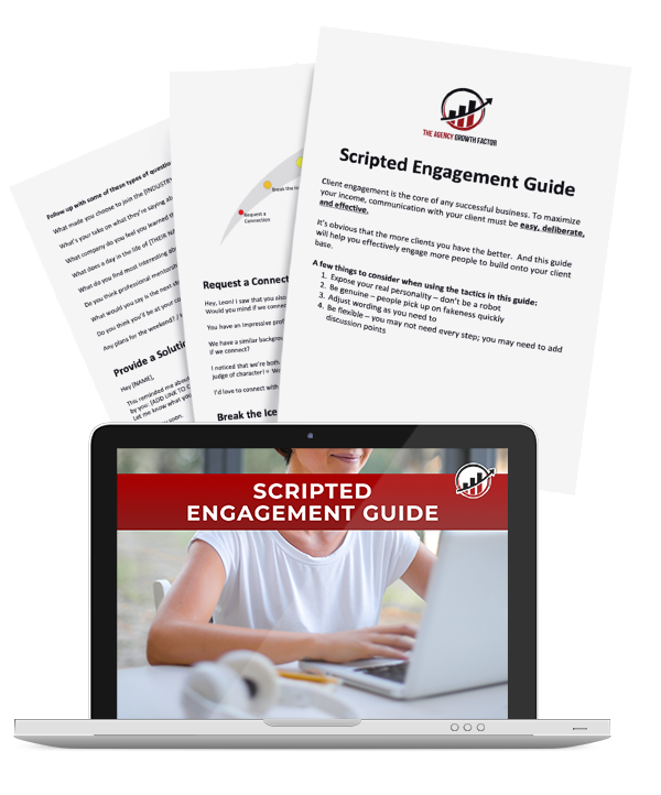 The Rapid Growth Engagement Scaling System packages up the best strategies, techniques, and conversation templates I’ve used. These are real-world tested, so I’m confident they’ll help you rapidly grow your business and attract high-ticket clients.